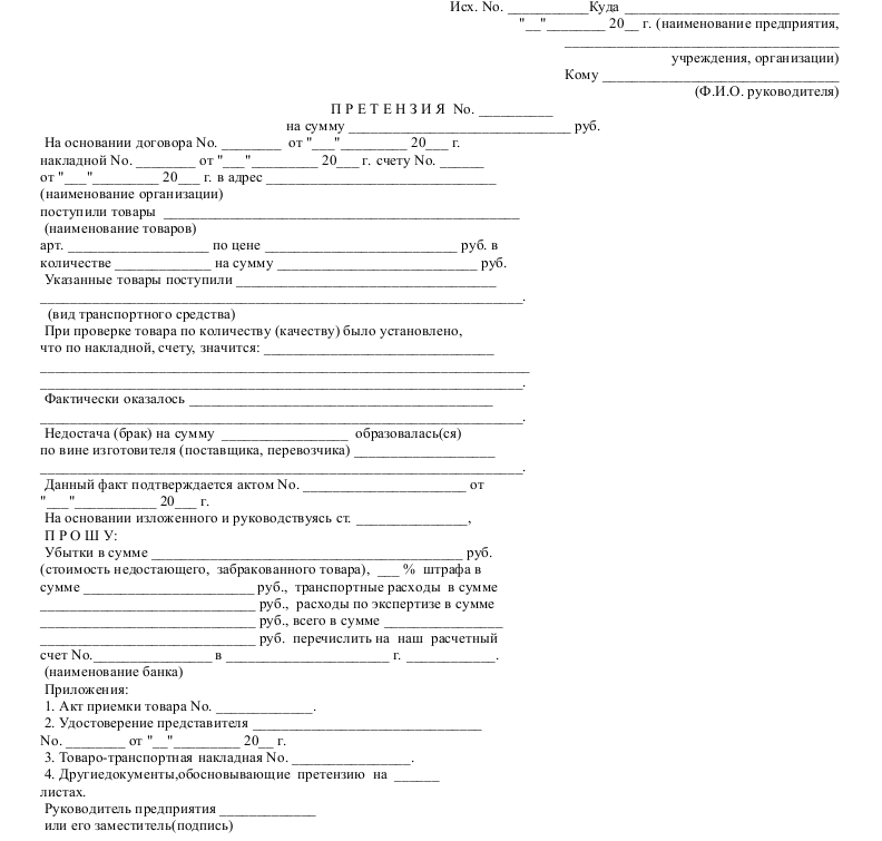 Образец акта брака товара