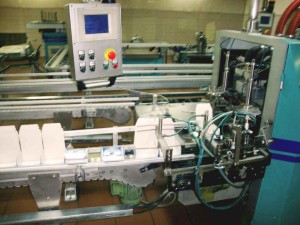 С помощью шнека сахар – песок будет подаваться в бункер, затем сахар окажется в загрузочной воронке. Оттуда он отправится в загрузочную головку, где смешается с водой. Для клейкости используется глицерин. Дальше влажный сахар идет в форму прессующей головки. Потом с помощью миксера он попадет во вращающиеся формы, в которых прессуется. Валиком сахар вдавливается в матрицу, затем толкачом выдавливается и попадает на ленту сушильного конвейера. Сушка происходит в печи, а охлаждение осуществляется вентилятором. Вакуумный захват упаковывает рафинад в коробки.