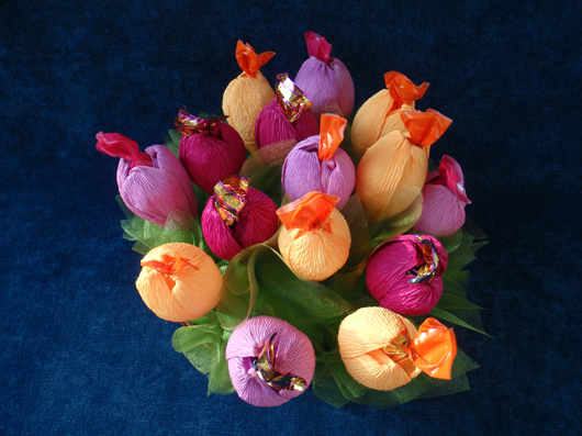 Каждый раз, готовясь к празднику и выбирая подарок, приходится задумываться, что бы такое подарить. Различные полотенца, гели, шампуни, посуда уже забили все шкафы и полки. И все равно приходится покупать подарок, который не очень – то и нужен. А такой эксклюзивный подарок, как букет из конфет, приведет в восторг, даже самых больших скептиков. И станет самым дорогим подарком, среди всех остальных.
