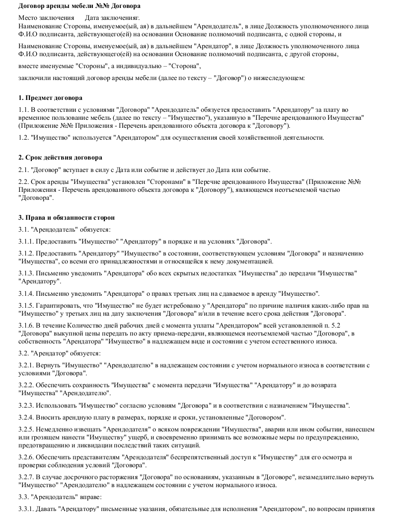 Образец договора аренды мебели