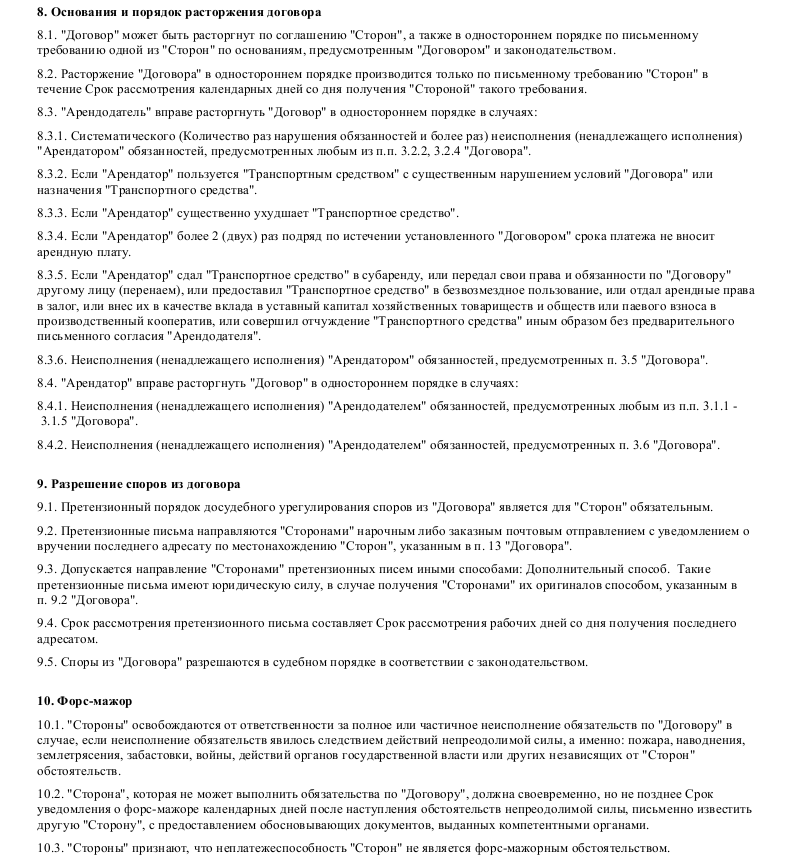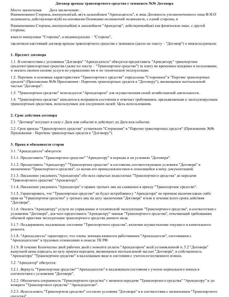 Скачать образец договора аренды транспортного средства с экипажем в формате .doc