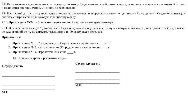 Образец договора безвозмездного пользования оборудованием