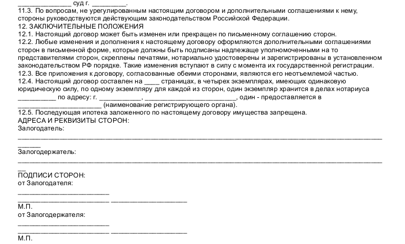 Образец договора ипотеки