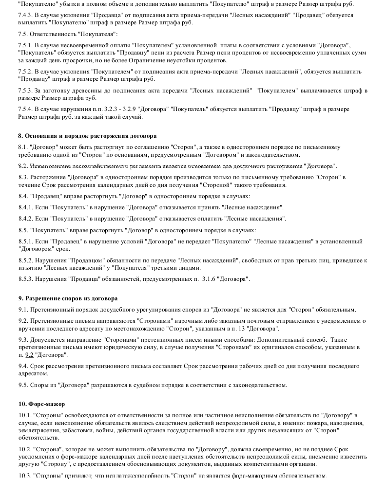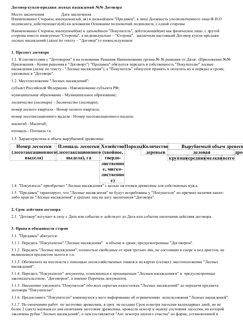 Образец договора на куплю-продажу лесных насаждений
