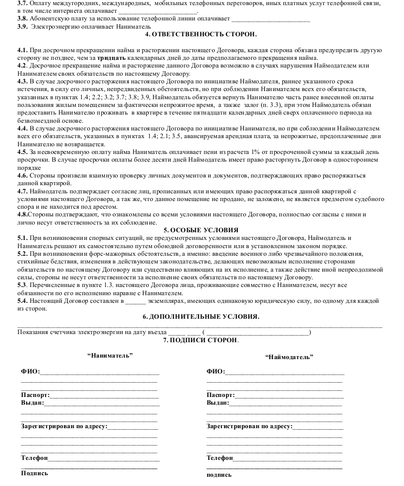 Образец договора найма жилого помещения