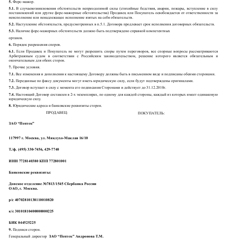 Образец договора оптовой поставки