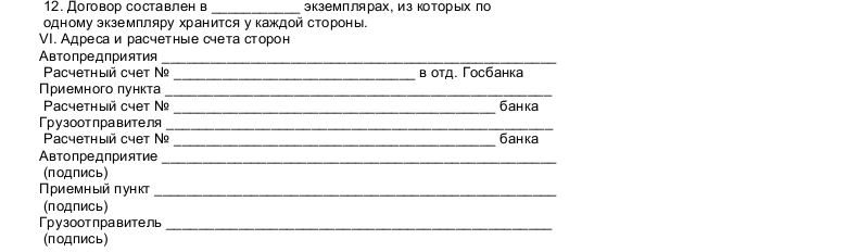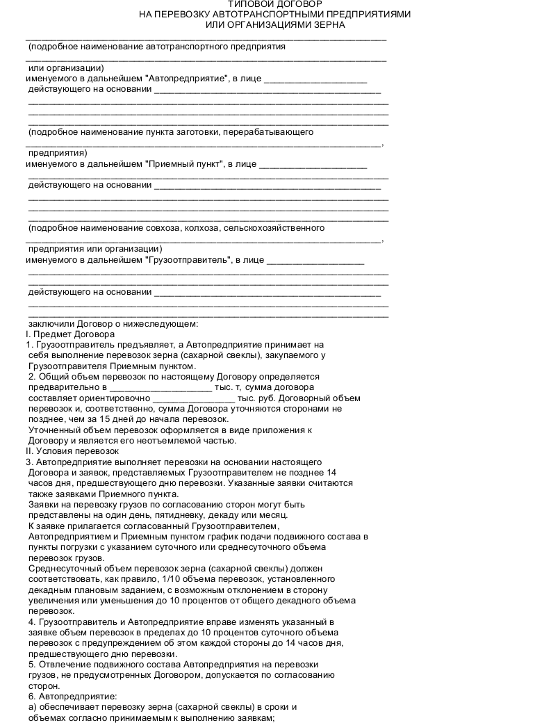 Транспортировка зерна из совхозов и колхозов на перерабатывающие и заготовительные предприятия, (Приемные пункты), проводится на основе трехсторонних договоров, которые заключаются автотранспортными предприятиями или организациями с приемными пунктами, совхозами, колхозами по соответствующей форме.