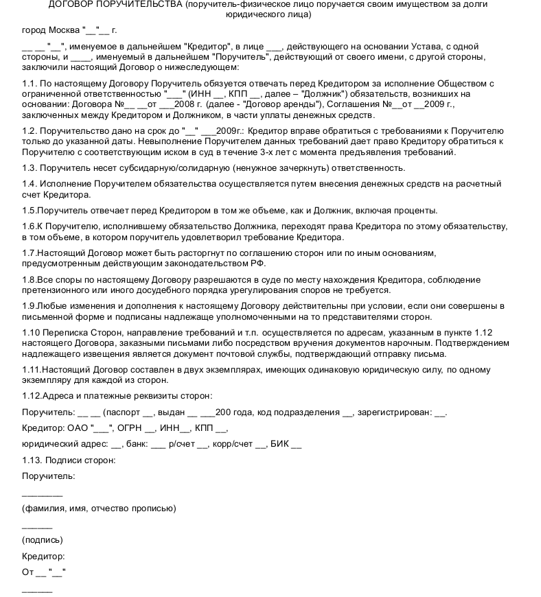 Договор поручительства физического лица — договор по обязательствам поручителя отвечать перед кредитором за исполнение со стороны третьего лица обязательств.
