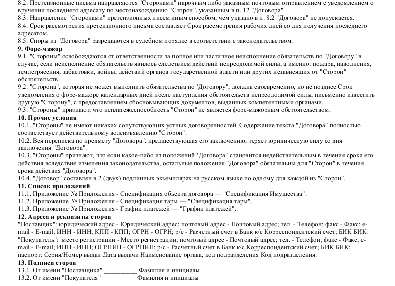 Типовой договор на поставку запчастей