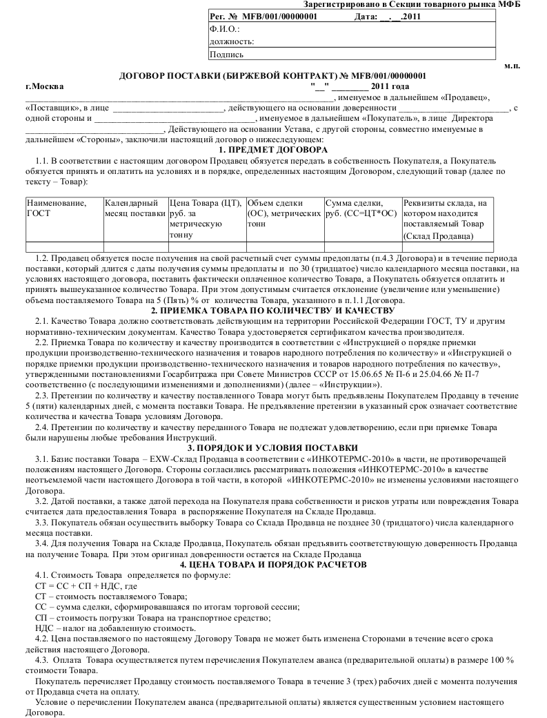 Образец договора поставки по ИНКОТЕРМС