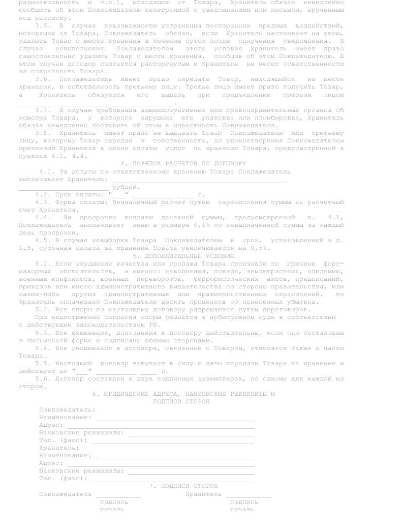 Представленный образец договора складского хранения содержит сопутствующие документы: