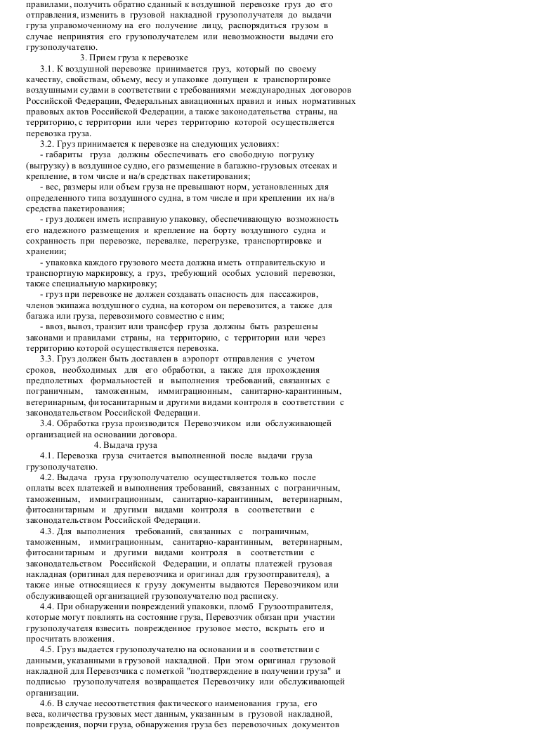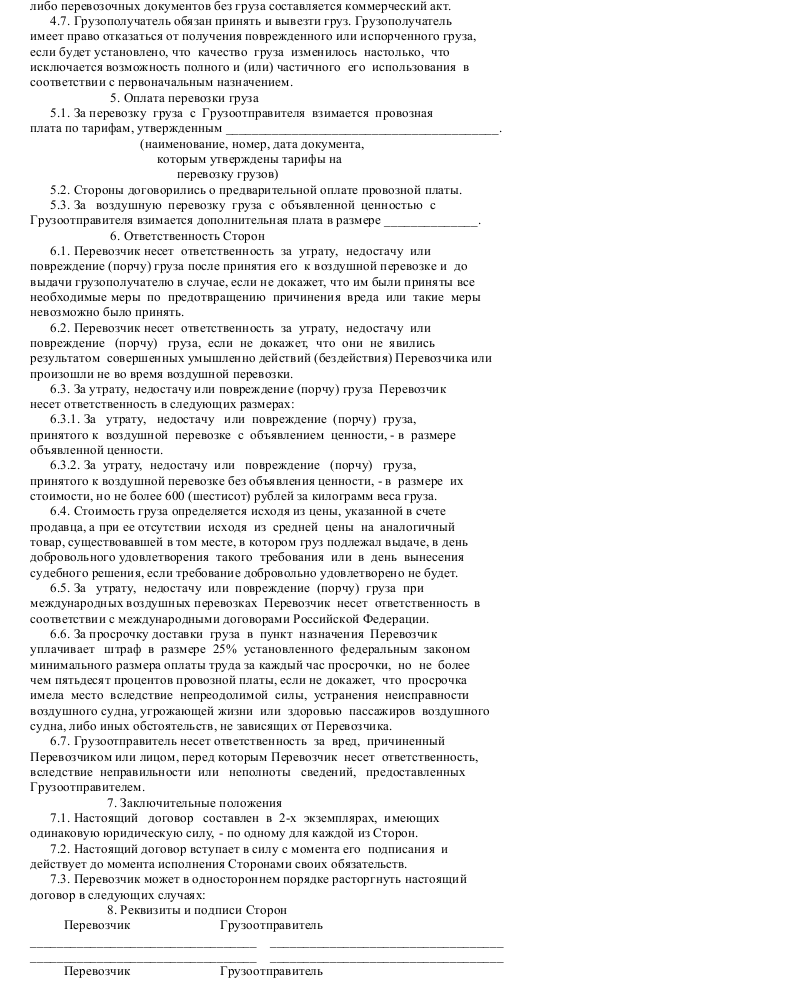 Образец договора воздушной перевозки груза