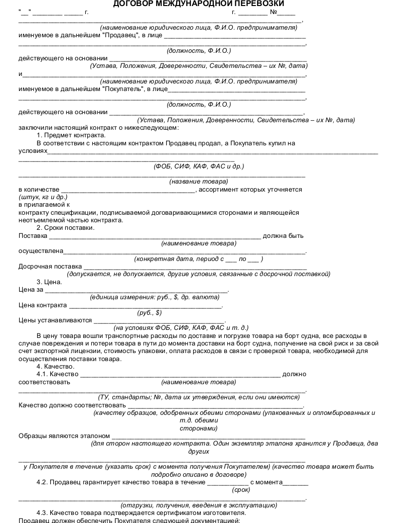 Скачать образец договора воздушной перевозки груза в формате .doc