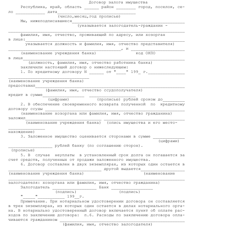 Образец договора залога имущества