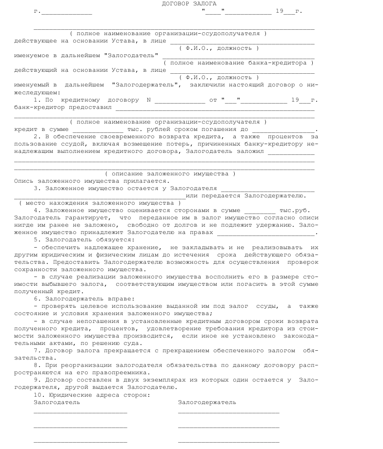 Образец договора залога