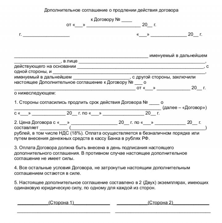 Образец дополнительного соглашения о продлении