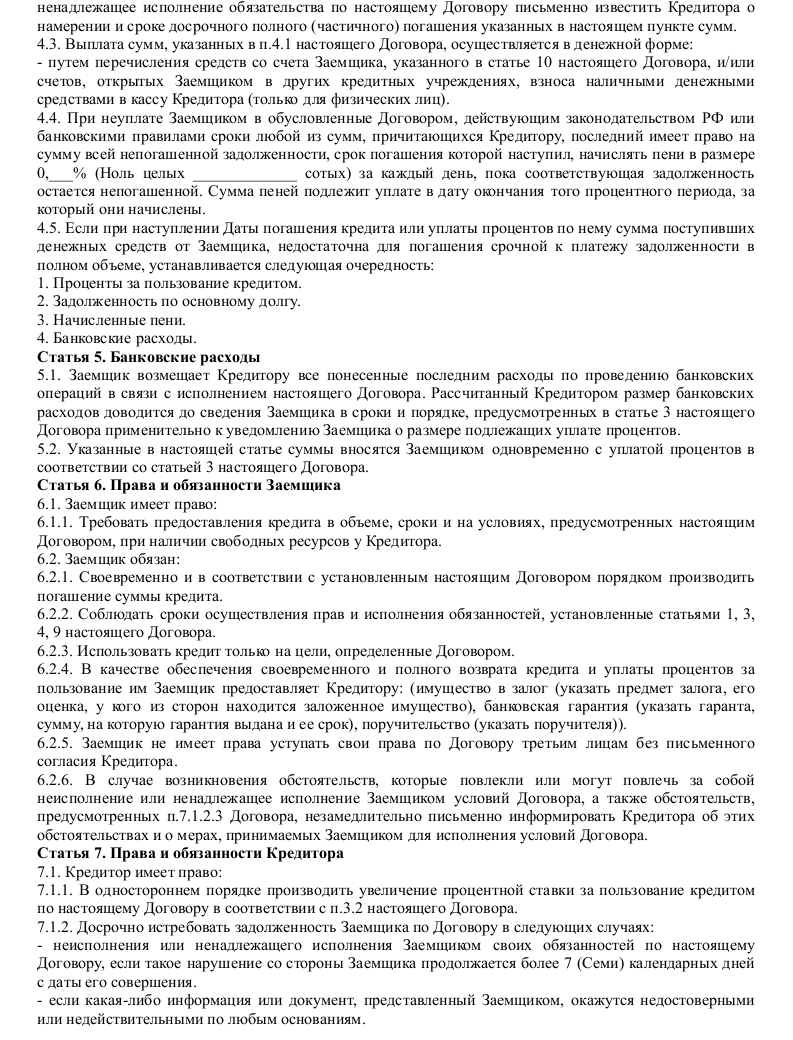 - неисполнения обязанностей по обеспечению кредита (статья 813 Гражданского Кодекса РФ).