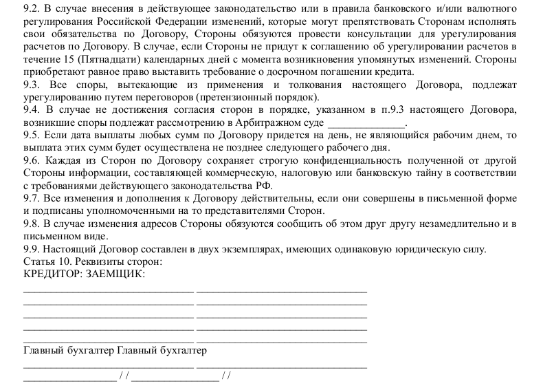 - при принятии решений о реорганизации, ликвидации, или уменьшении уставного капитала заемщика;