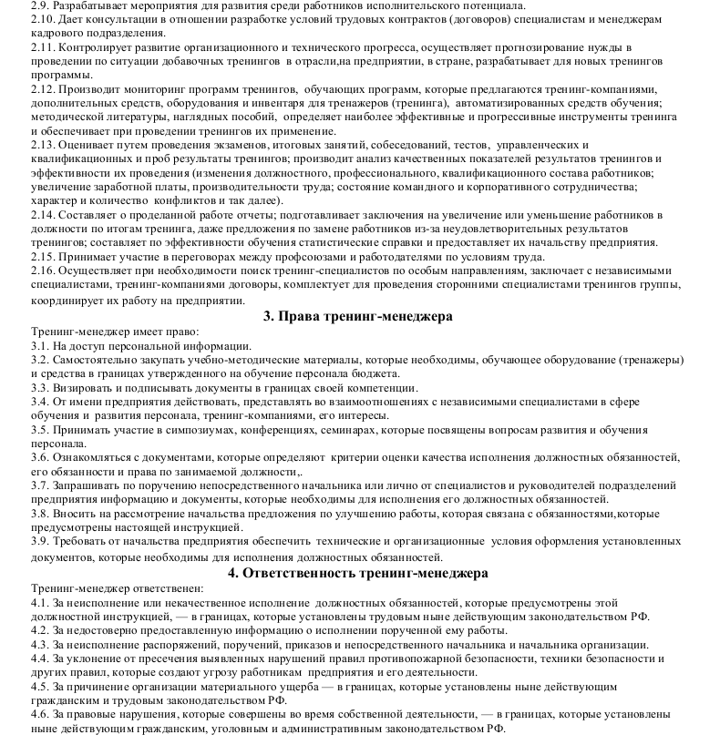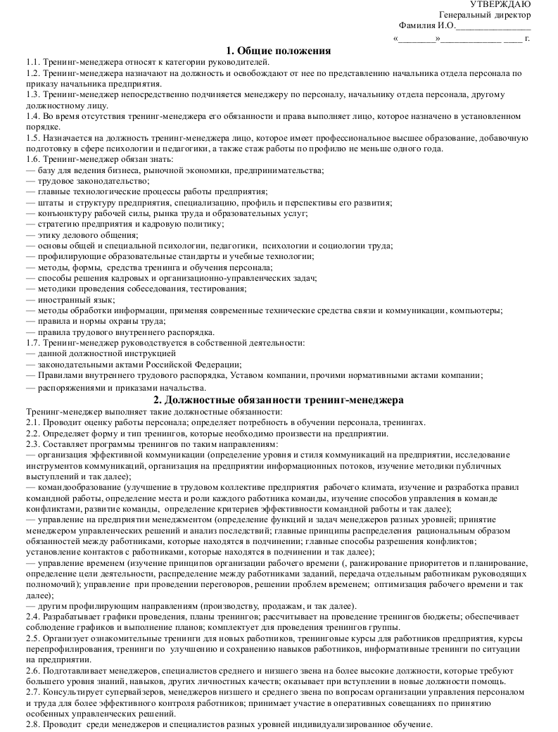 Образец должностной инструкции (обязанностей) тренинг-менеджера