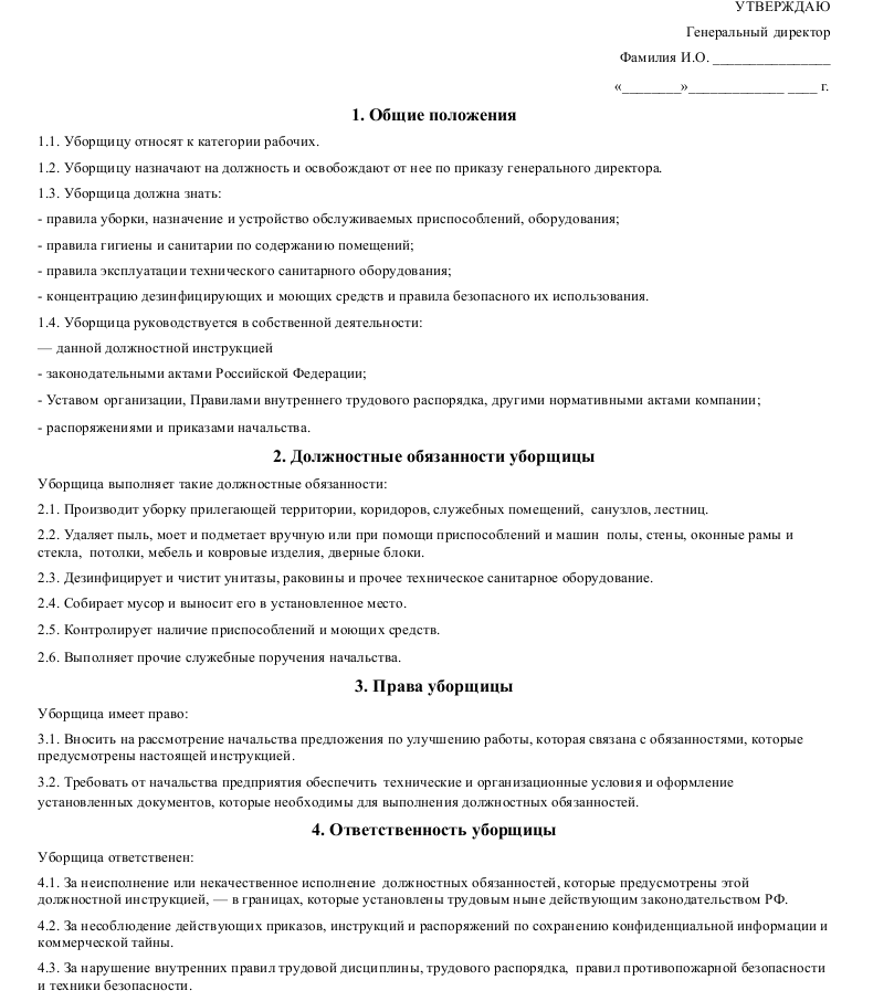Скачать образец должностной инструкции уборщицы в формате .doc