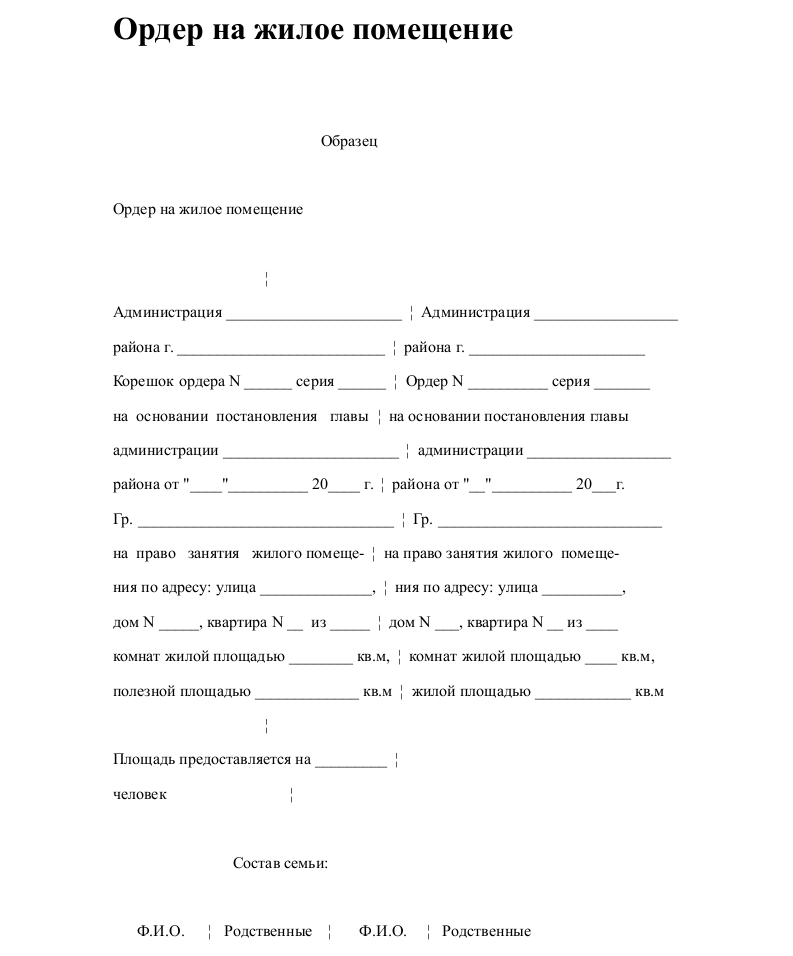 Образец ордера на общежитие