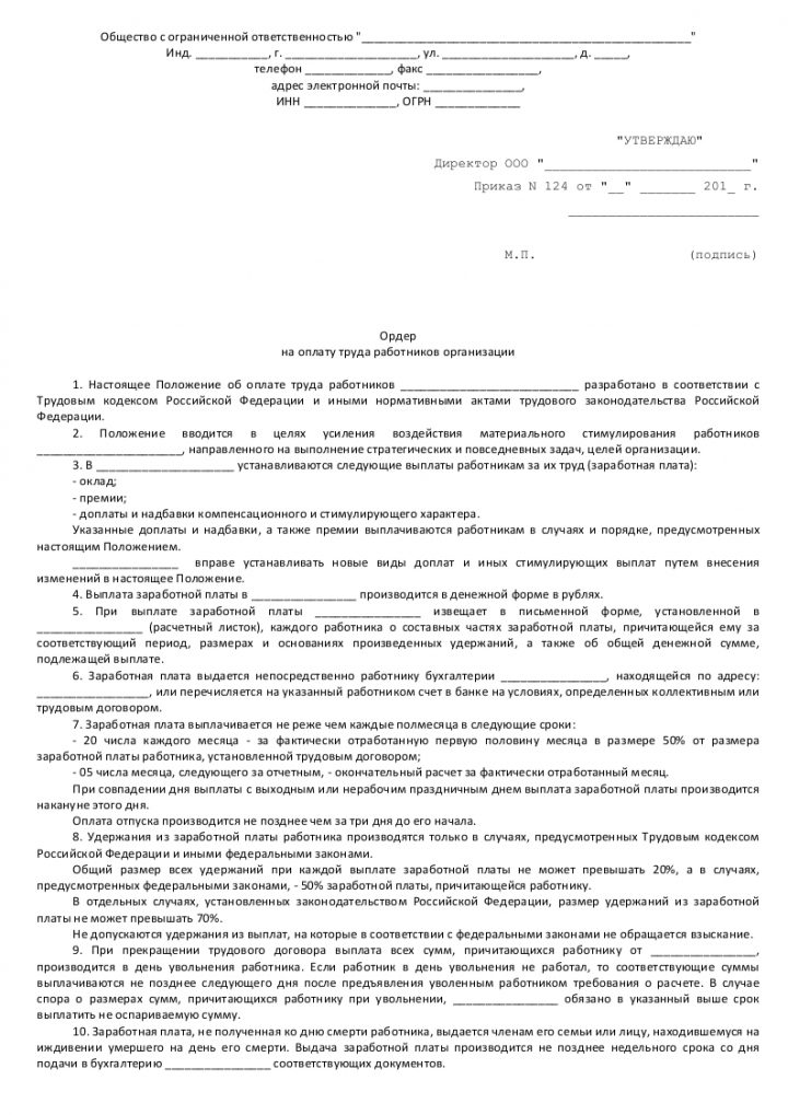 Образец ордера на зарплату