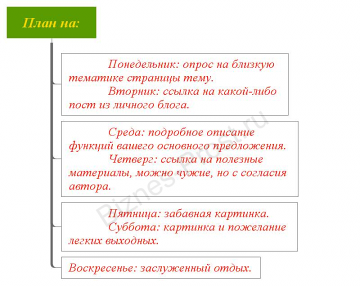Примерный план ведения бизнес-страницы в социальной сети Фейсбук: