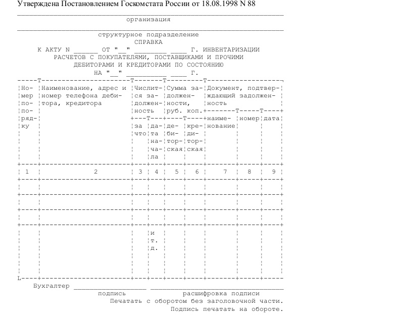 Результаты проверки расчетов покупателей и поставщиков заносят в акт инвентаризации расчетов с клиентами, поставщиками и другими дебиторами и кредиторами согласно форме No ИНВ17, в начале которого указываются ссылки на дату и номер учредительного документа, даты действительного начала и завершения проверки. Все участники проверочной комиссии проверяют данные акта собственными росписями