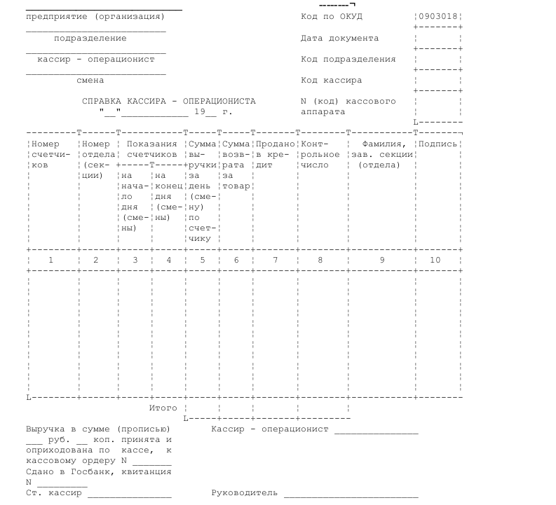 Образец справки кассира-операциониста. Специализированная форма N 17-ОН