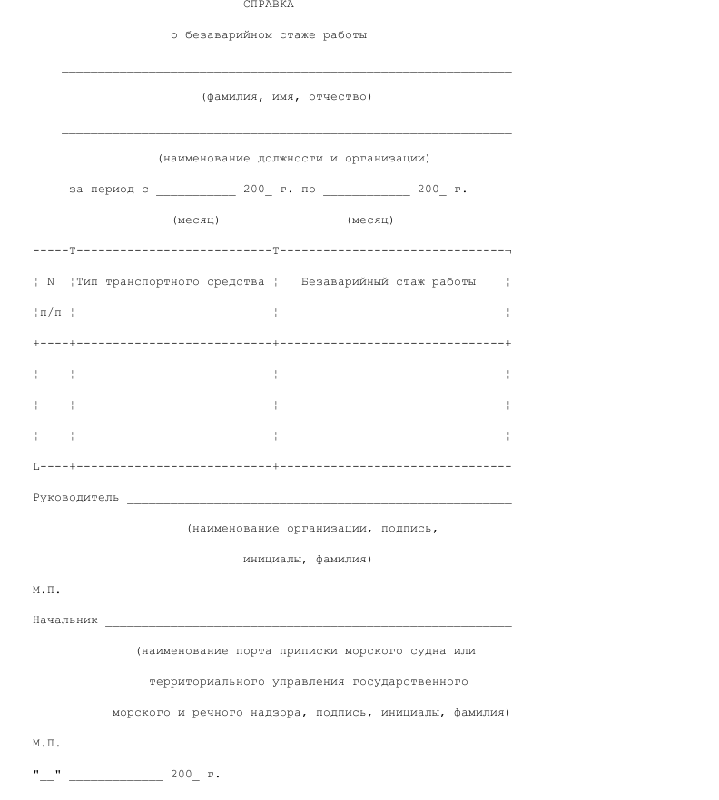Скачать образец справки о безаварийном стаже работы в формате .doc