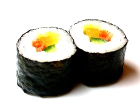 - суши маки – это ролл, завернутый прессованные водоросли, начиненный начинкой;