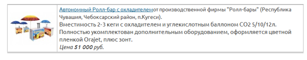 К этому следует приобрести стул для реализатора – 425 рублей. Следовательно, полная стоимость первого варианта составит – 51425 рублей.