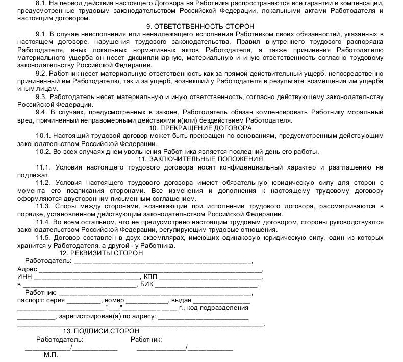 Скачать образец трудового договора с переводчиком