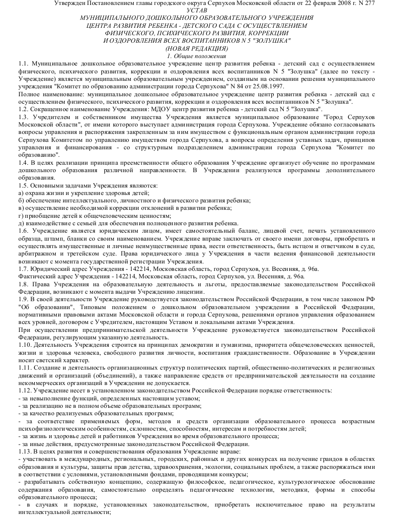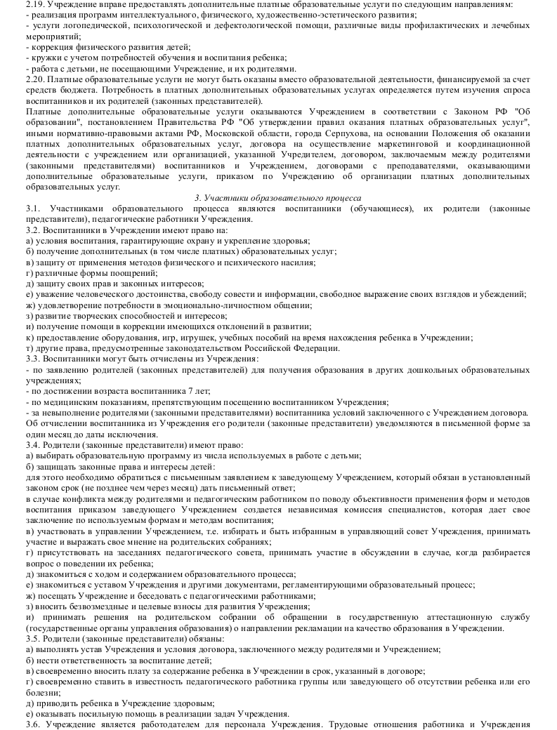 Образец устава муниципального дошкольного образовательного учреждения центра развития ребенка