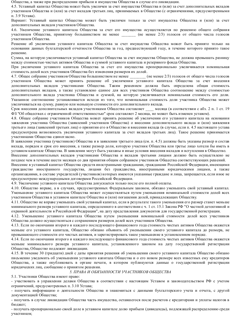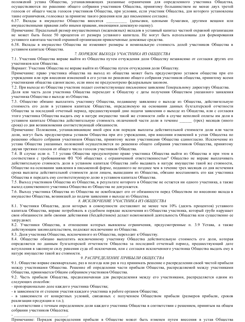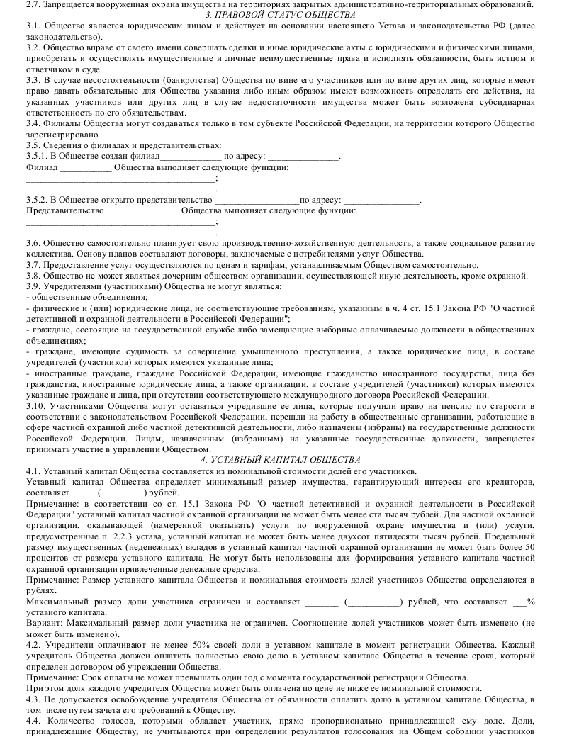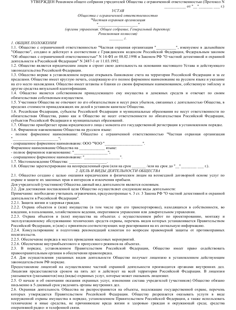 Скачать образец устава общества с ограниченной ответственностью частной охранной организации в формате .doc