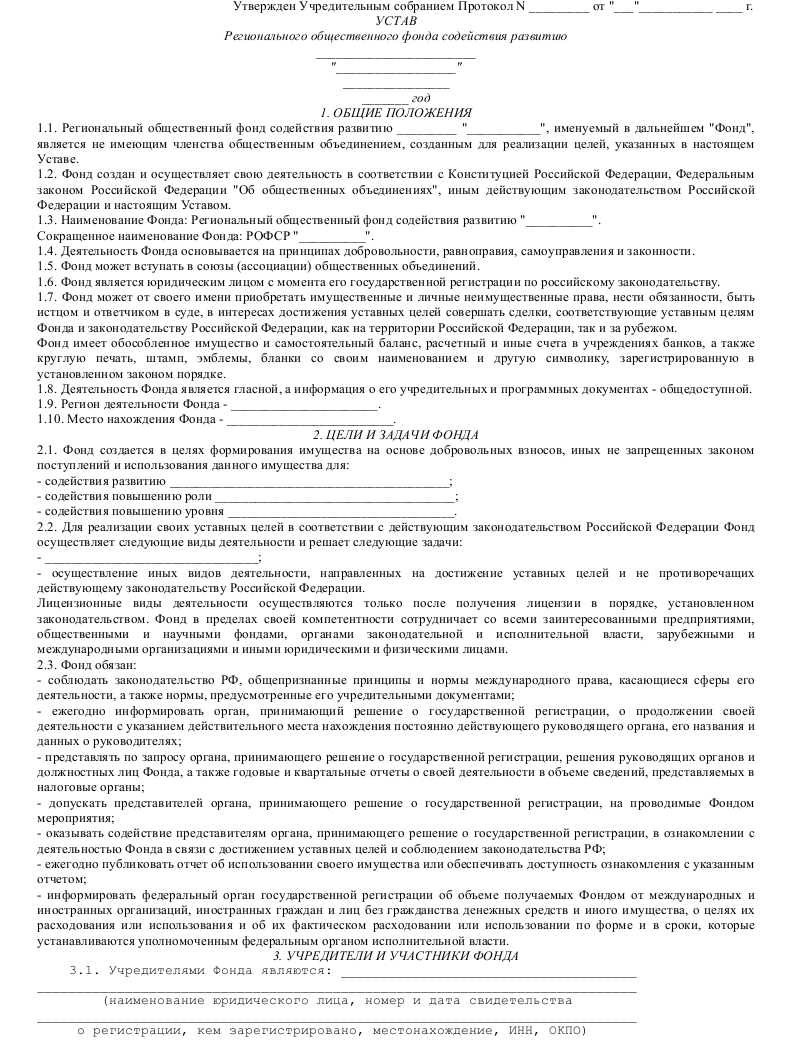 Скачать образец устава регионального общественного фонда содействия развитию в формате .doc