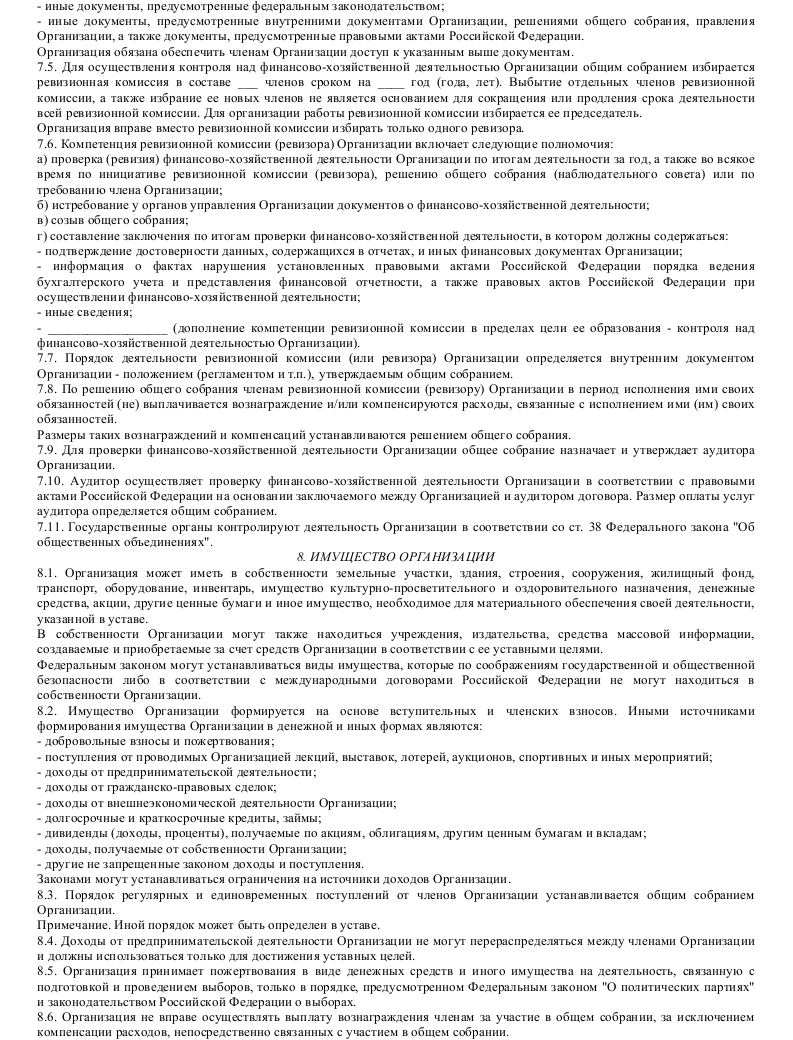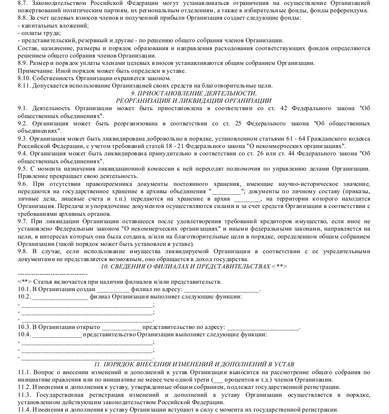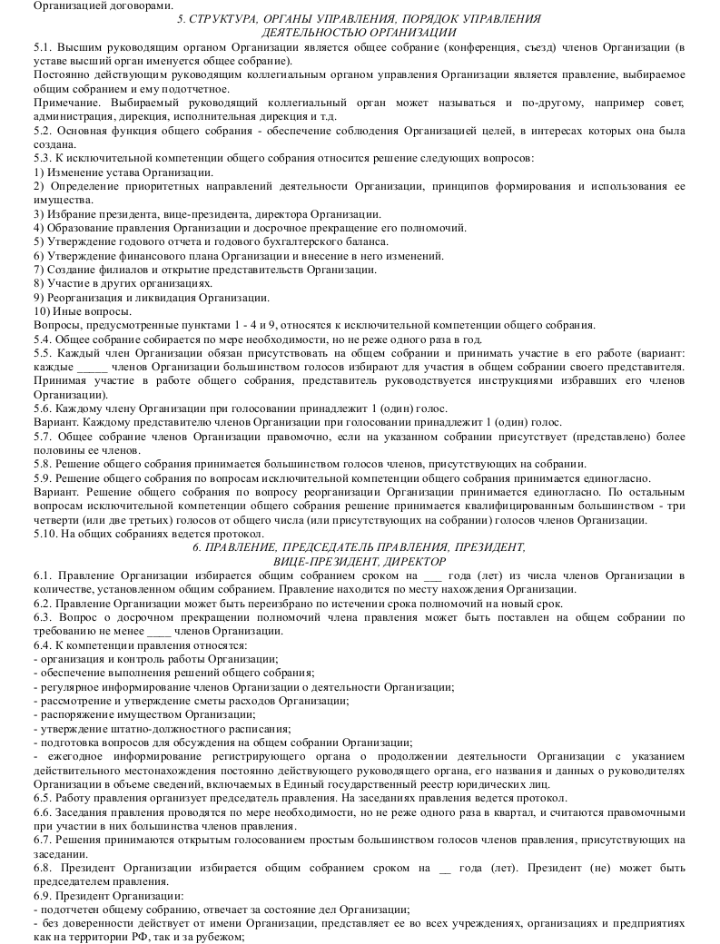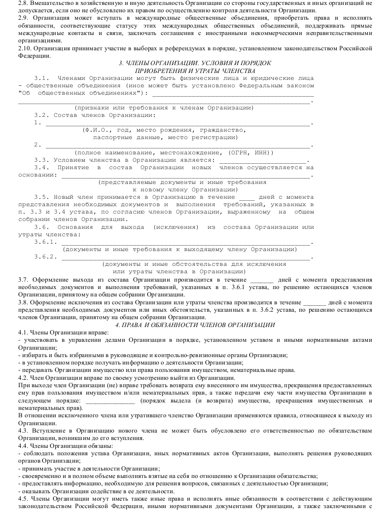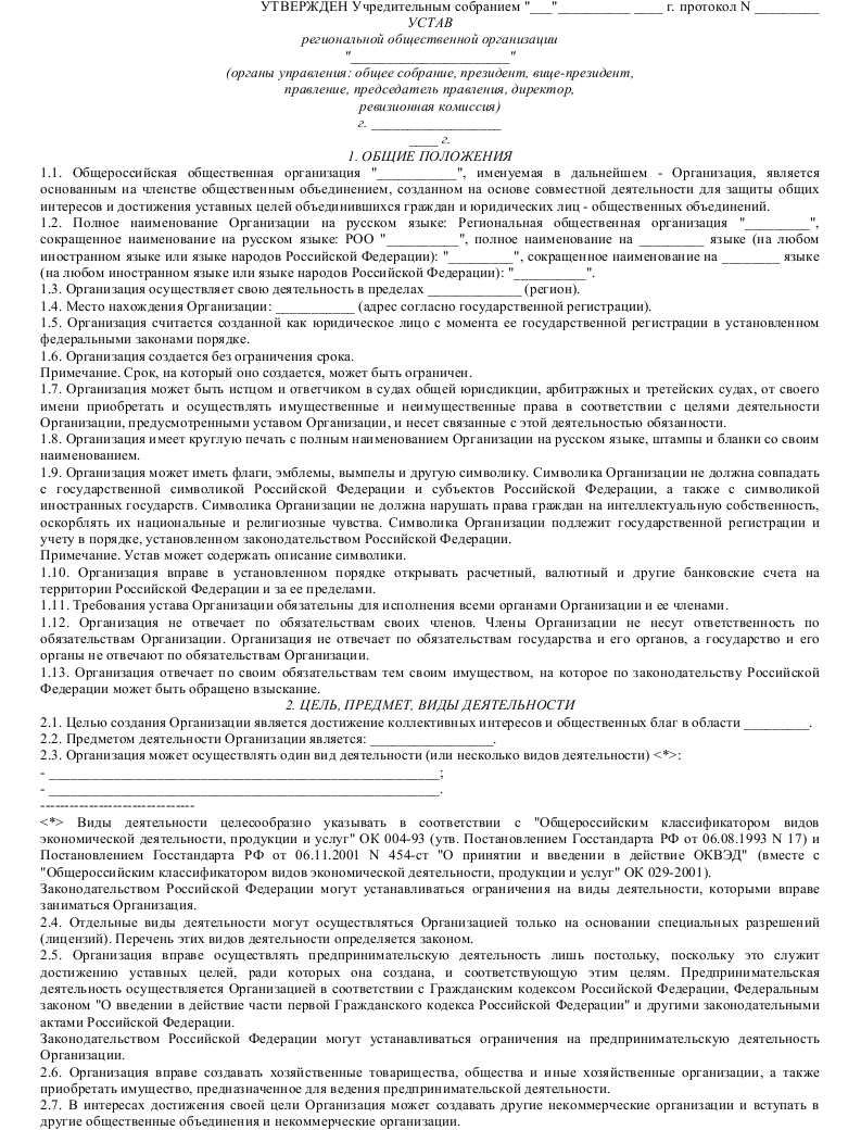 Образец устава региональной общественной организации, подлежащей государственной регистрации