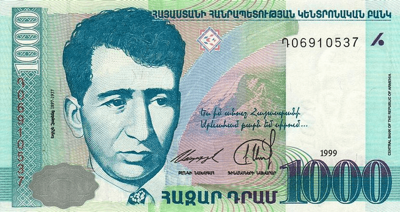 На новых банкнотах стоят подписи Председателя ЦБ РА Саркисяна Тиграна и Министра финансов Республики Армения Сандояна Эдварда .
