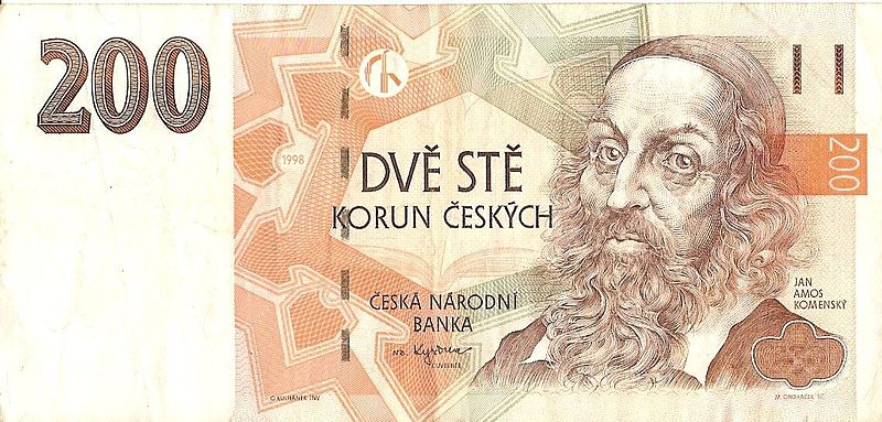 - Изображение на лицевой стороне — портрет Яна Амоса Коменского.