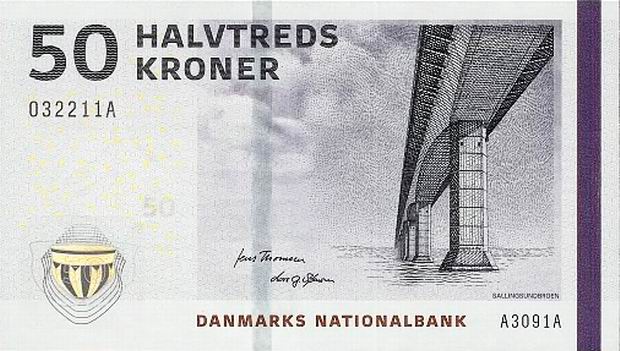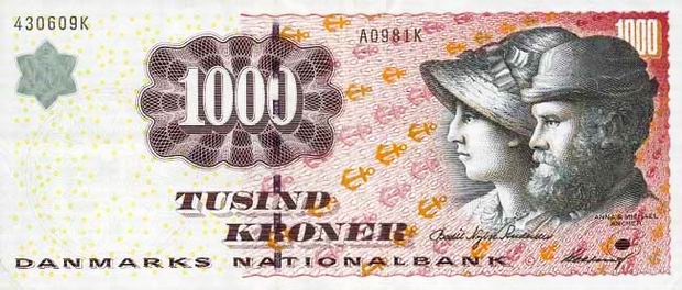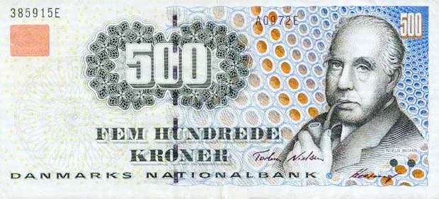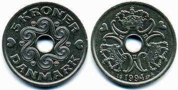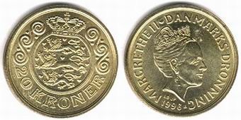 Королевство Дания имеет свою национальную валюту. Сегодня это датская крона. Датская крона, равная 100 эре. Национальная валюта Королевства Дании, имеет также хождение в Гренландиии на Фарерских островах. Код ISO 4217 — DKK. 1 крона делится на 100 эре (дат. øre). Крона введена в использование в 1873 году. В настоящее время в обращении применяются монеты номиналом 50 эре, 1, 2, 5, 10 и 20 крон и банкноты номиналом 50, 100, 200, 500 и 1000 крон.Монеты современного образца начали использоваться в период с 1989 по 1993 год.1 октября 2008 года была выведена из обращения и перестала быть легальным платёжным средством монета номиналом 25 эре. Эти монеты могли быть обменены в банках до 1 октября 2011 года.Все банкноты, которые были выпущенные после 1945 года, являются законным платёжным средством и их можно обменять на банкноты нового образца, при этом нет никаких ограничений. С 1 января 1999 года курс датской кроны был привязан к евро в соотношении 7,46038:1, это курс должен остаться неизменным до введения в Дании общеевропейской валюты.