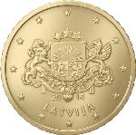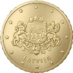 Латвийские монеты евро являются современными денежными знаками Латвии, которые ввели 1 января 2014 года. На национальной стороне монет, как отличительные знаки изображены: 1, 2 евро — женщина в национальном костюме; 50, 20, 10 центов — большой герб Республики Латвия, 5, 2, 1 цент — малый герб Республики Латвия. Надпись на гурте монеты номиналом 2 евро — «DIEVS SVĒTĪ LATVIJU» («Боже, благослови Латвию» — строчка из Национального гимна). Конкурс на чеканку монет Латвии начался 20 сентября 2012 года. 10 декабря было объявлено, что латвийские монеты будут чеканить в Германии, на монетном дворе Баден-Вюртемберга,. Производство стартовало в июле 2013 года.