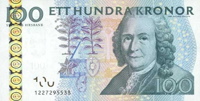 - 100 крон с изображением Линнея Карла;