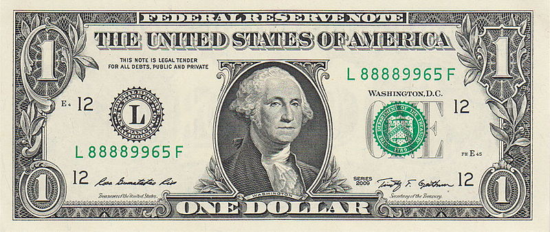 - 1-й президент страны Вашингтон Джордж на банкноте номиналом в 1 доллар.