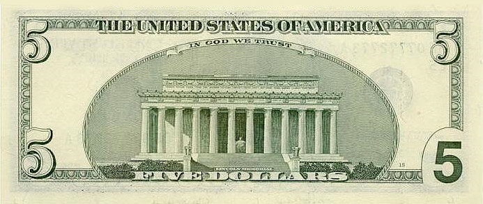 - 16-й президент США, победитель в войне Юга и Севера, Линкольн Авраам — на банкноте в 5 долларов.