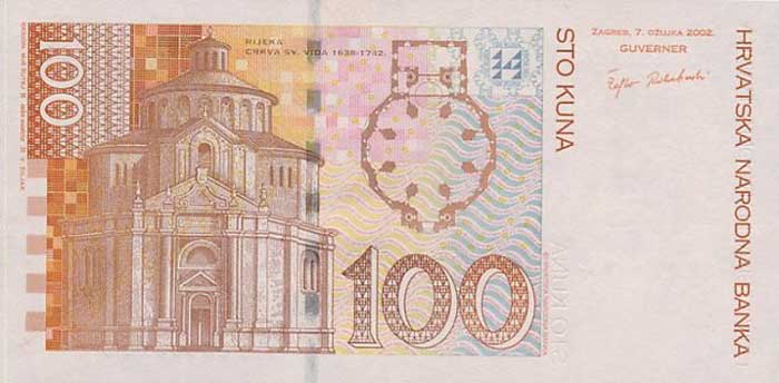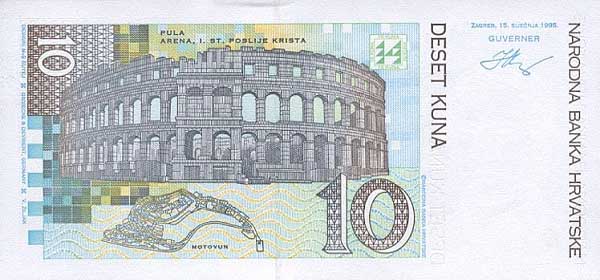 В обращении в стране имеются монеты и банкноты . Одна куна отвечает ста липам. Все банкноты одного размера, одного защитного, графического, смыслового стиля, часто напоминающего Евро. Каждый номинал имеет собственный водяной знак. Лицевая сторона украшена портретом видного хорватского деятеля. Вверху по центру нанесены серия и номер купюры. На другой стороне наносится изображение исторического памятника или знаменитого монументального строения. Каждая сторона купюры имеет небольшие окошки с металлическими вкрапленными нитями.