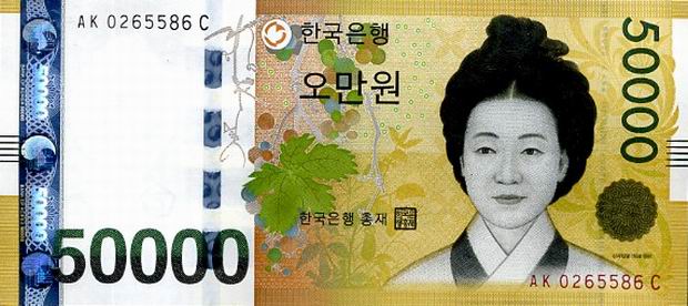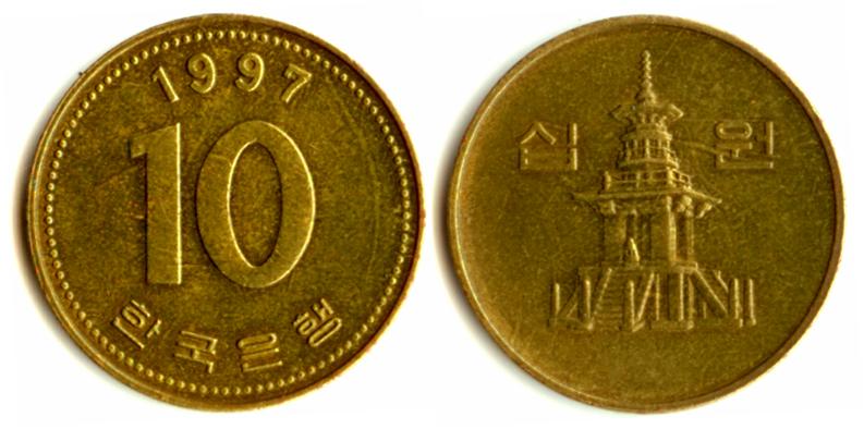 Корейская денежная единица – вона. Она обозначается перечеркнутой буквой W. Сегодня в обращении используются монеты номиналом в 10, 50, 100 и 500 вон, а также банкноты в 1000, 5000 и 10000 вон. В ходу также банковские чеки достоинством от 100 тысяч вон и более, однако при расчете ими на обратной стороне необходимо будет указать ваш номер паспорта, адрес и телефон в Корее, поэтому, если вы не имеете вида на жительство, расчет чеками практически невозможен.