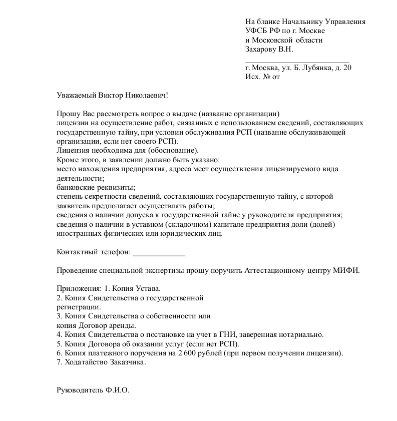 Образец заявления на получение лицензии